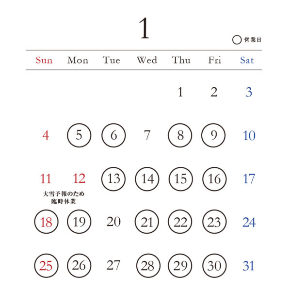 1月8日は雪のため臨時休業