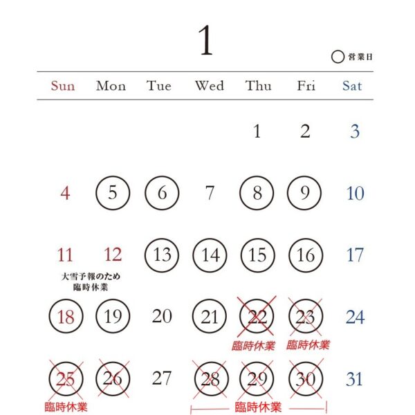 1月の営業は31日までお休み
